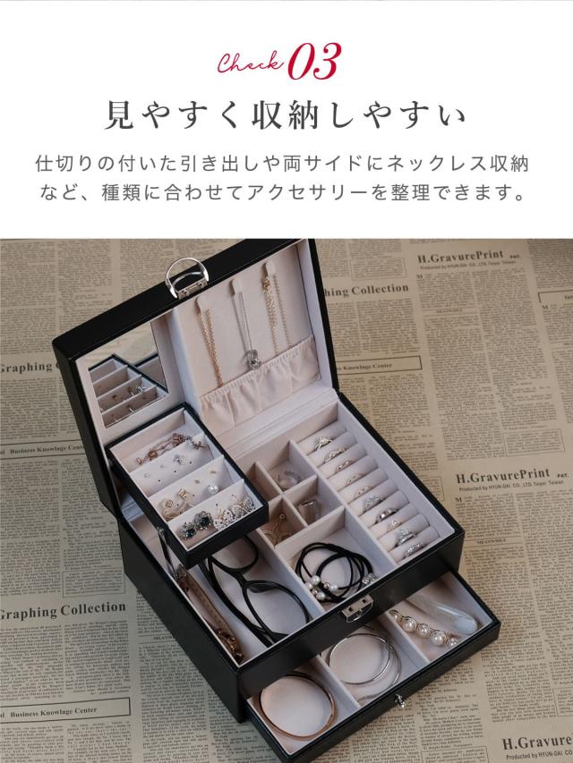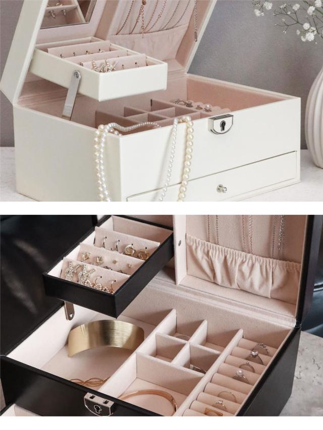 ジュエリーボックス 2.5段式 鍵付き 大容量 ジュエリーケース ジュエリー収納 アクセサリーボックス アクセサリーケース アクセサリー入れ 宝石箱 ピアス イヤリング ネックレス 指輪 リング キッズ おしゃれ かわいい プレゼント