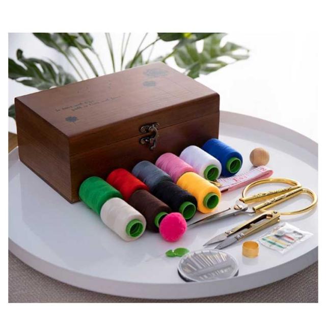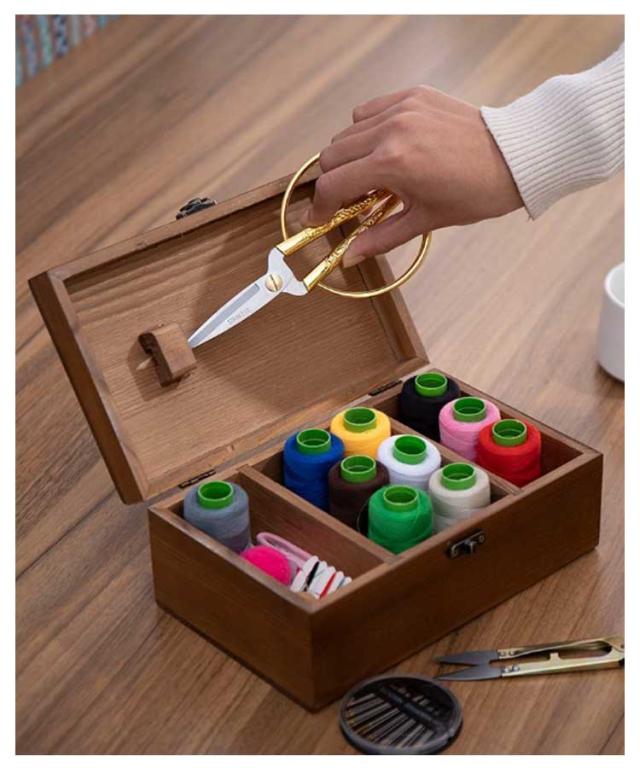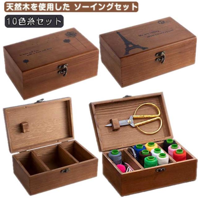 10色糸セット 道具箱 母の日 木製 道具 天然 天然木 敬老の日 おしゃれ 大容量 BOX 手作り 手芸 家庭用 小物入れ 多機能 収納 小物収納 仕切り 贈り物 送料無料 ソーイングボックス ケース 収納 妻 クリスマス 誕生日 お祝い 裁縫セット