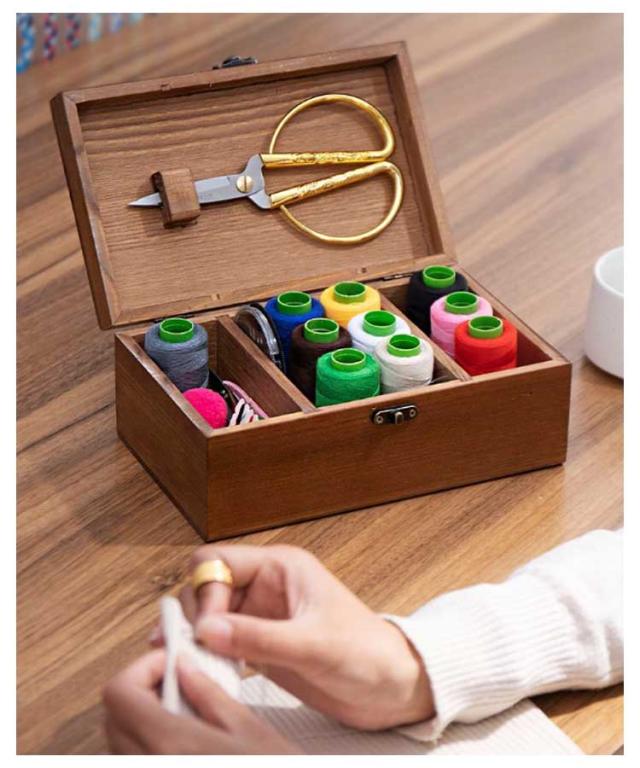 | 天然木を使用した ソーイングセット。 20点以上の裁縫小物が収納できる強力な収納機能です。 パーティション収納は一目瞭然です。 回転ボタンで取り外しに便利です。 糸、はさみ、ボタン、針、スプール、巻尺などを簡単に保管できます。 広々としたインテリアは、すべてのツールと備品を収納する十分なスペースを提供します。 | |
