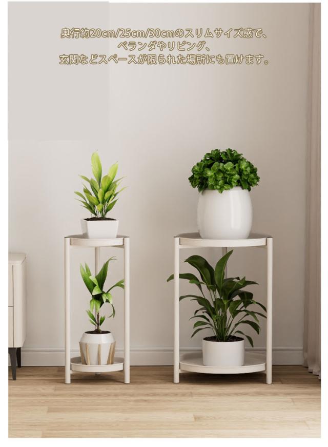 | シンプルですっきりしたラインが魅力の植木鉢ラック。【直径20cm/25cm/30cm選べる】 2段タイプフラワーラック、鉢を2つ飾ることが可能なので、お好みの花は観葉植物をを立体的に、おしゃれに演出します。 奥行約20cm/25cm/30cmのスリムサイズ感で、ベランダやリビング、玄関などスペースが限られた場所にも置けます。 劣化やゆがみが少ないアイアン製のため、重たいの植木鉢を置いても安定感があバッチリで、最大耐荷重は45kgに達し、植物をしっかり支えてくれます。 置くだけで植物がインテリアの一部に溶け込んでくれます。 | |