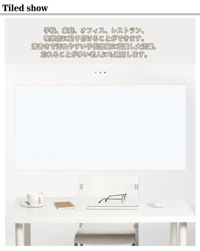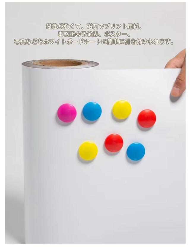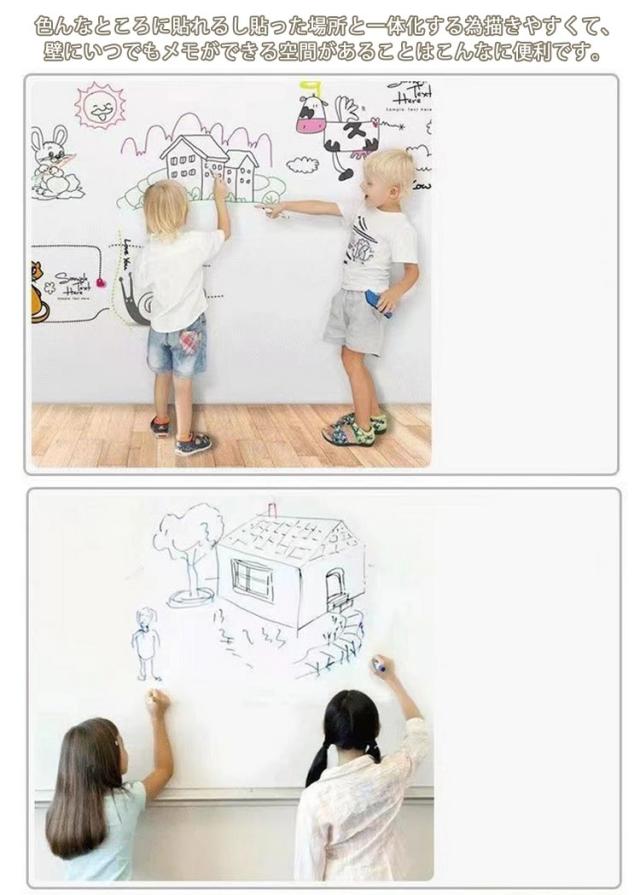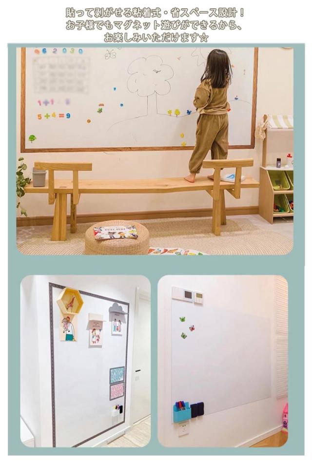 | 【ホワイトボード】【90X120cm・90X150cm】【マグネット対応】【粘着式】 貼って剥がせる粘着式・省スペース設計!お子様でもマグネット遊びができるから、お楽しみいただけます☆ 大判のホワイトボードシートですが、柔軟な素材を採用するので、曲げたり、巻けたり、DIYカットしたりすることができます。 磁性が強くて、磁石でプリント用紙、事務所の予定表、ポスター、写真などをホワイトボードシートに簡単に引き付けられます。 環境に優しい厚手のPET筆記用フィルムを採用し、環境に優しく、無毒、無臭です、耐水性に優れています。表面が滑らかで、書きやすくて、簡単に拭き取れます。 ホワイトボードシートの裏面に粘着剤が付き、簡単に壁面に付着可能です。貼って剥がせる粘着式だから、賃貸でもOK! 色んなところに貼れるし貼った場所と一体化する為描きやすくて、壁にいつでもメモができる空間があることはこんなに便利です。 学校、家庭、オフィス、レストラン、喫茶店に貼り付けることができます。落書きで汚れやすい子供部屋に設置し大活躍、忘れることが多い老人にも適用します。 ※磁気と書く機能を守るため、ご使用前に、保護フィルムを剥がしてからご利用ください。 | |