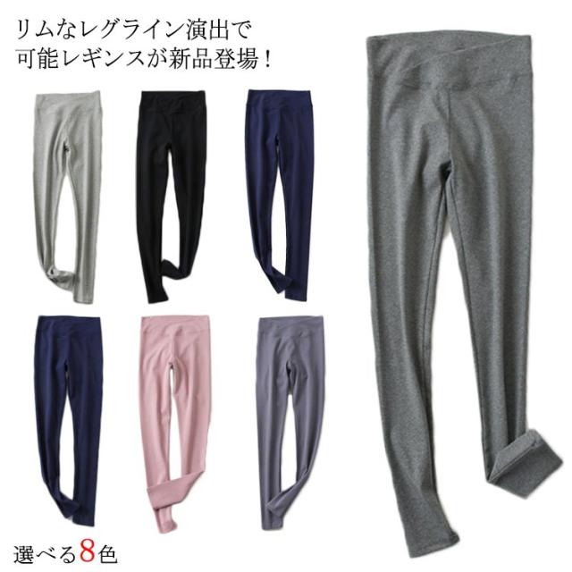 レギンスパンツ レディース ボトムス ロング丈 下着 スポーツ スパッツ レギパン 着痩せ 無地 ハイウエスト ウエストゴム スキニー ストレッチ 美脚 薄手 春物 お洒落 送料無料