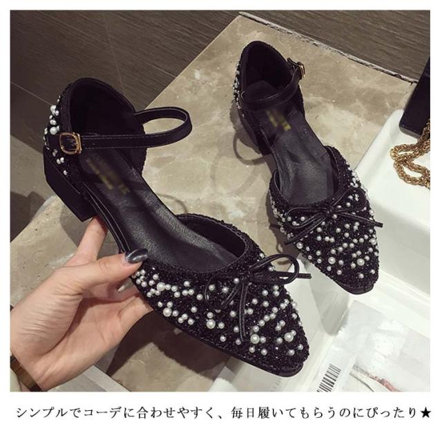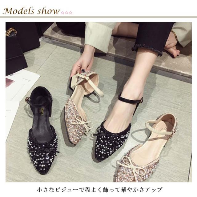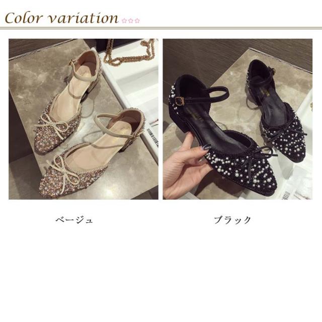 | 上品で華やかな気分あふれるビジュー付パンプス 小さなビジューで程よく飾って華やかさアップ 歩きやすいフラットソールが嬉しい すっきり美脚を叶うポインテッドトゥ この一足で、足元を華やかに魅せてくれる | |