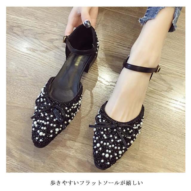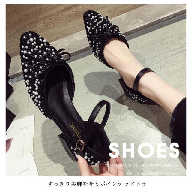 パンプス レディース ぺたんこ スリッポン ビジュー付き フェイクレザー PUレザー フラットソール フラットシューズ ポインテッドトゥ フリンジ シューズ 靴 大人可愛い こなれ感 春新作