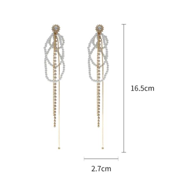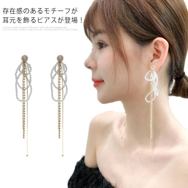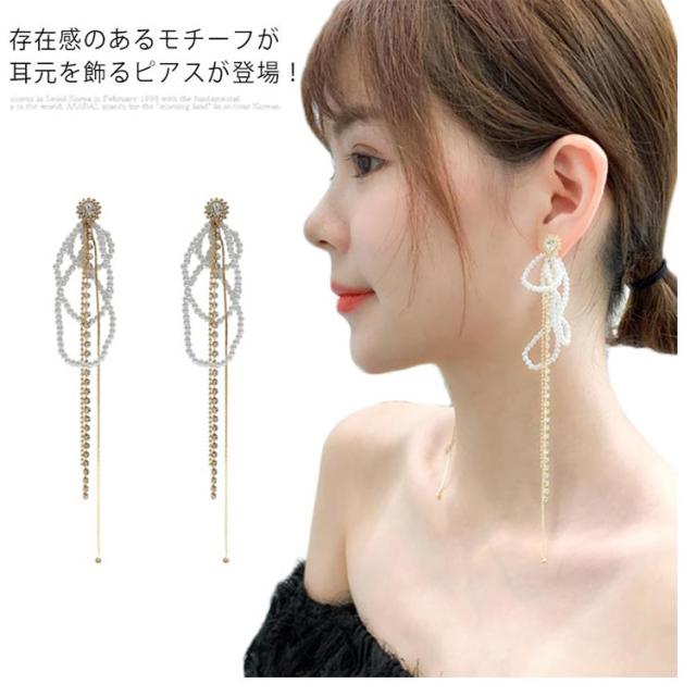 ピアス パール ラインストーン ロングピアス パールピアス ラインストーンピアス ぶら下がり ビーズ チェーン ロング カジュアル アクセサリー アクセ ギフト プレゼント おしゃれ 可愛い