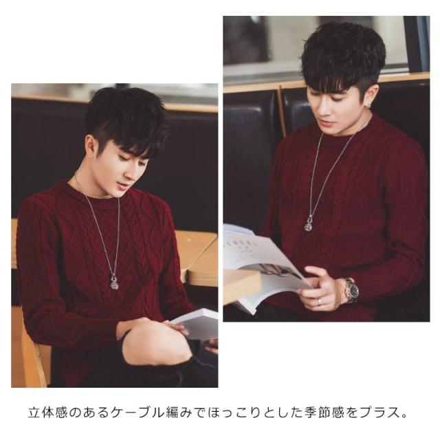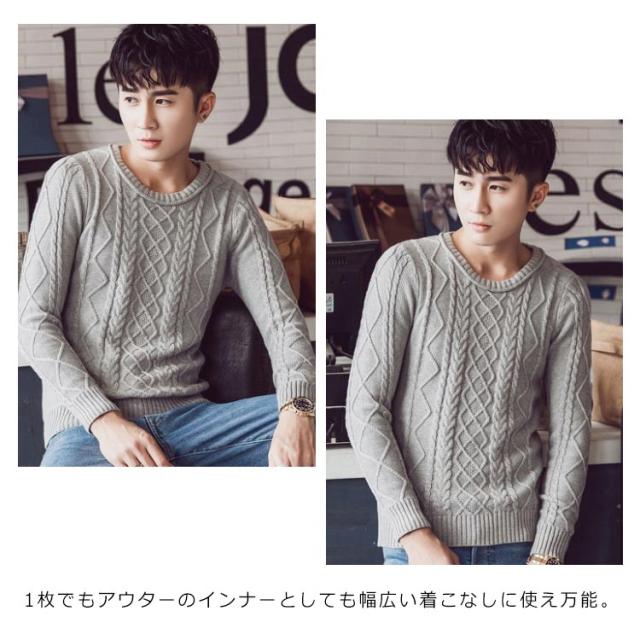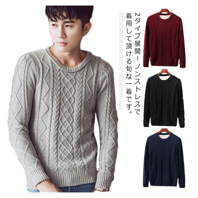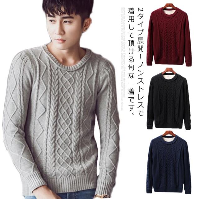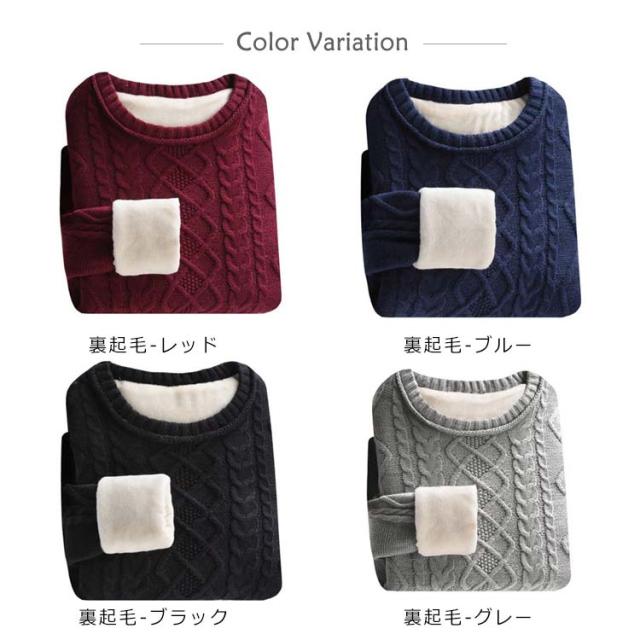 ニットセーター メンズ ニットソー クルーネック トップス 裏起毛 あったか ケーブル編み 防寒 冬服 保温 プルオーバー ゆったり カジュアル 厚手 寒さ対策