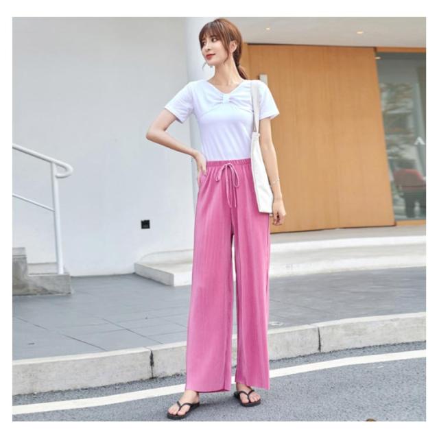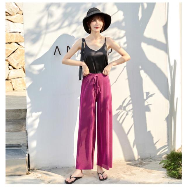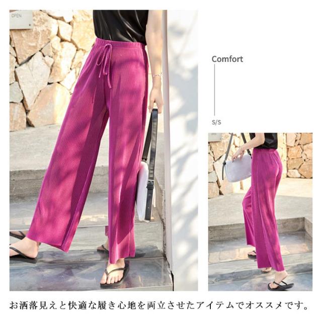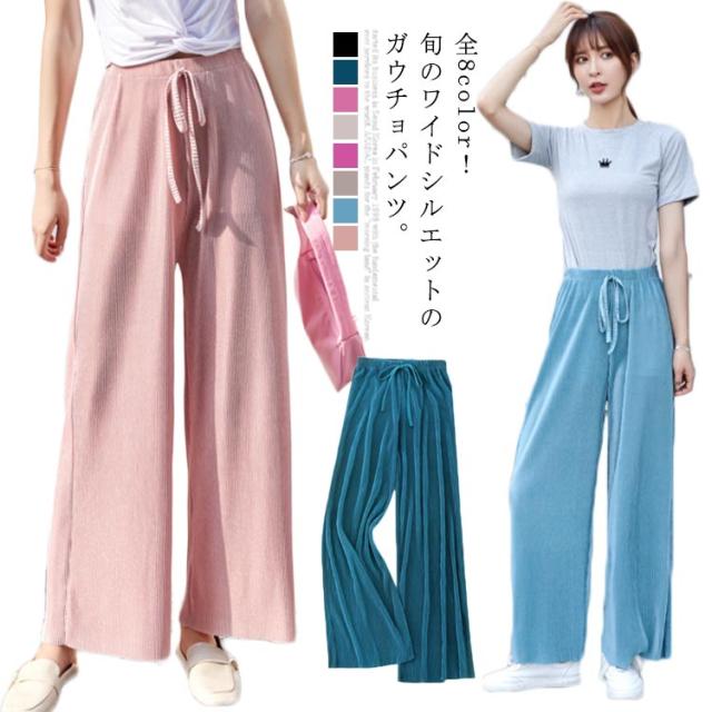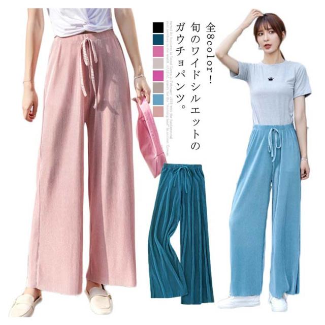 全8color!ワイドパンツ ガウチョパンツ リラックス ロングパンツ ヨガパンツ 楽チン ダンス ベリーダンス ボトムス ロング丈 プリーツ風 シンプル 無地 レディース 春夏