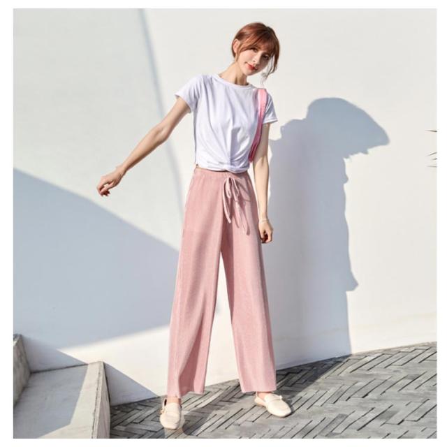 | 全8color!旬のワイドシルエットのガウチョパンツ。 細かめのプリーツ風で縦ラインが強調できます。 ウエスト部分は楽ちんなゴム&ヒモデザインになっておりリラックス度も満点! ハイウエストデザインなので、お腹や腰周りをすっきり見せる効果も。 お洒落見えと快適な履き心地を両立させたアイテムでオススメです。 | |