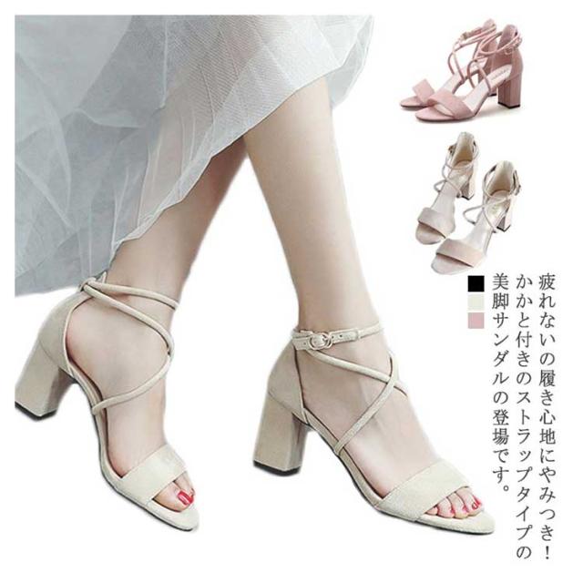 安定感と美脚効果兼備!サンダル レディース ハイヒール ハイヒールサンダル 太めヒール ストラップサンダル 歩きやすい 安定感 美脚 疲れにくい 通勤 キレイめ 春夏 新作