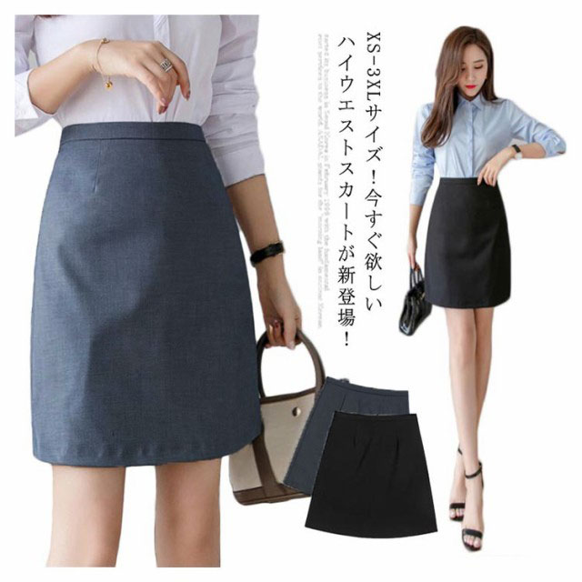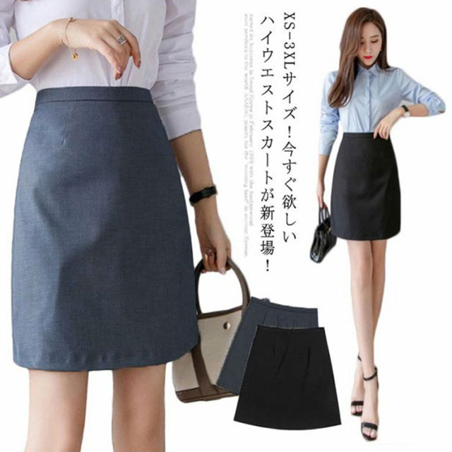 XS-3XLサイズ!ハイウエストスカート スカート ペンシルスカート 膝丈 タイトスカート aライン 無地スカート ペンシル 無地 通勤 オフィス キレイめ 小さいサイズ 大きサイズ グレー ブラック