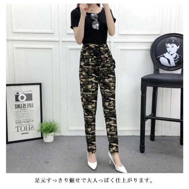 無地・ストライプ・迷彩柄 サルエルパンツ レディース アンクル丈 カジュアルパンツ サルエル パンツ 長ズボン ハイウエスト 薄手 春夏 美脚 ボトムス