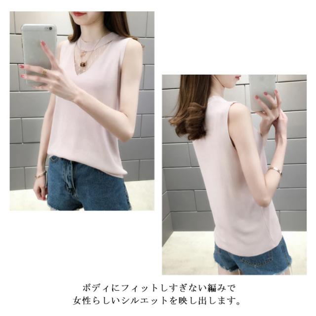 全4色×4サイズ!シースルー切り替え ニットタンクトップ タンクトップ 冷感タンクトップ ノースリーブ ニットトップス 夏服 インナー トップス 春夏 レディース