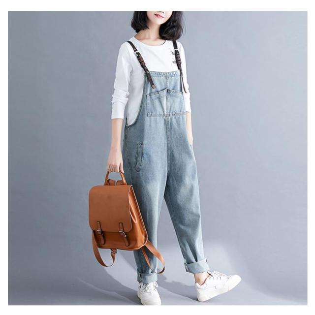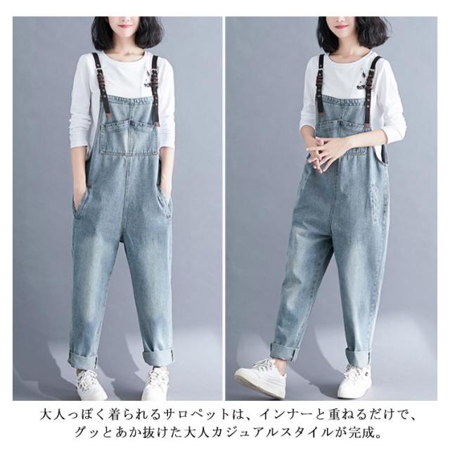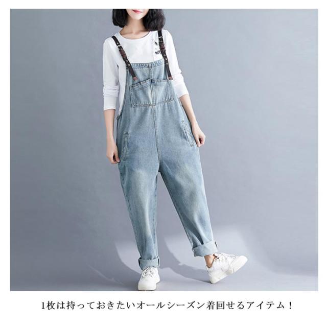 デニムサロペット オーバーオール レディース オールインワン サロペット ロールアップ ロング丈 デニムパンツ デニム ボトムス サロペットパンツ サルエル ゆったり カジュアル