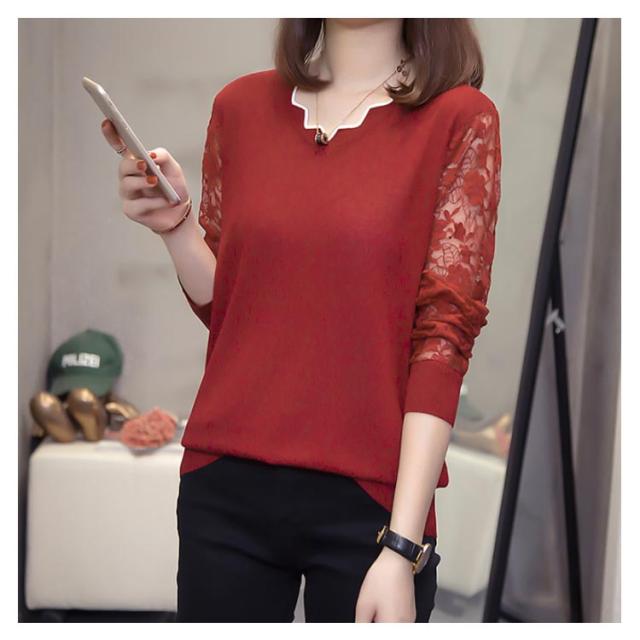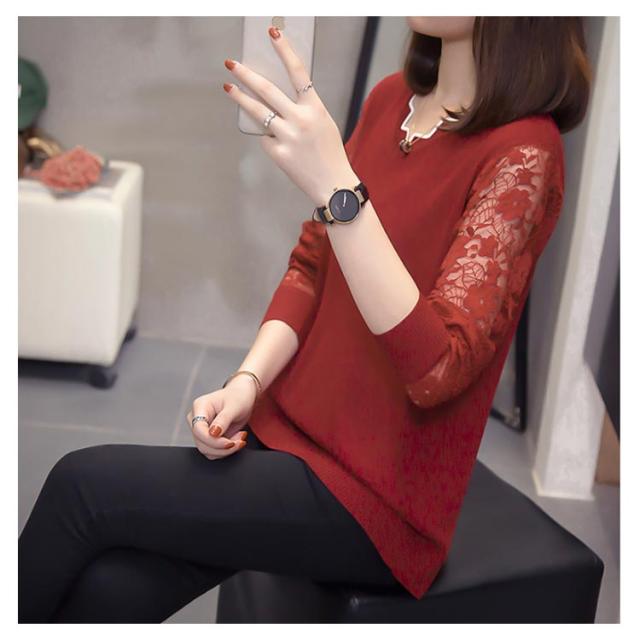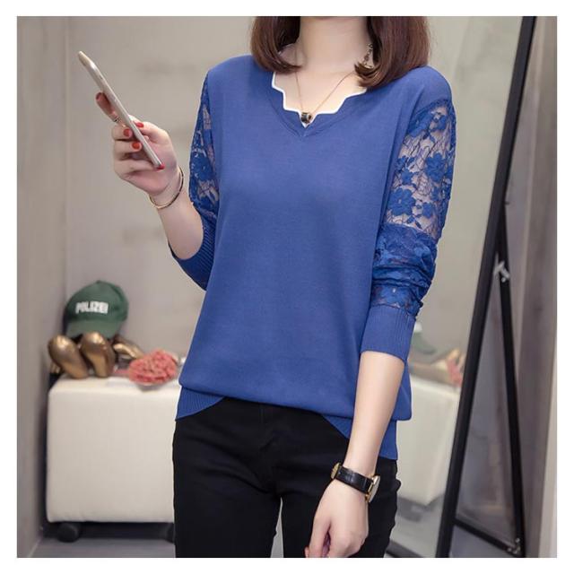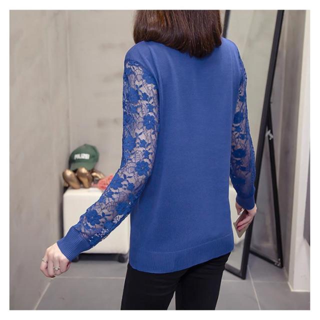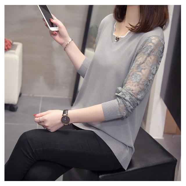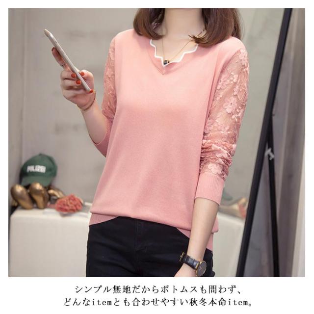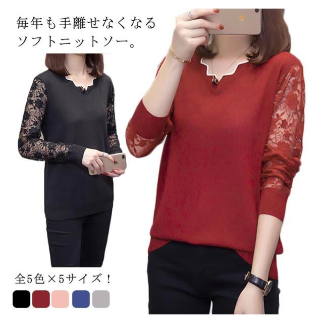 全5色×5サイズ!袖シースルー刺繍 ニットトップス レース袖ニット レディース レース切替 にっと トップス 長袖 大きサイズ 春 秋 おしゃれ 可愛い