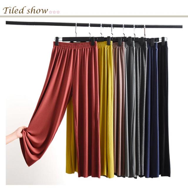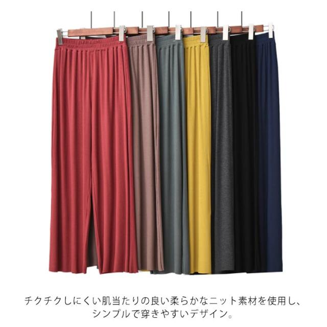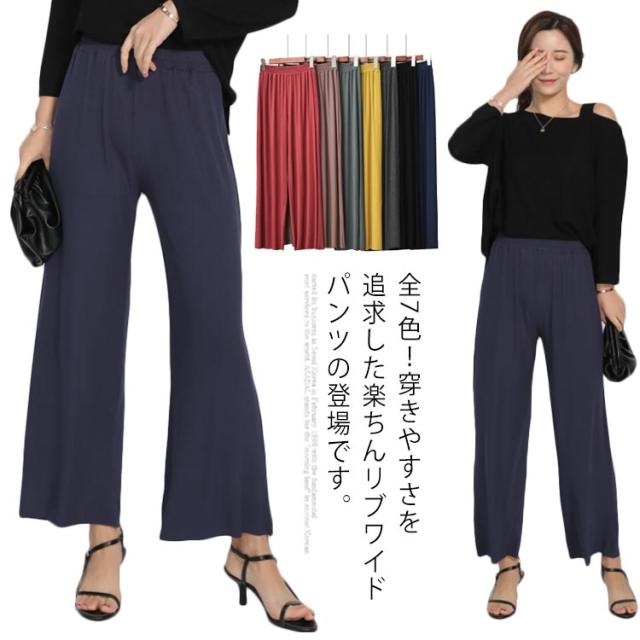全8色!リブワイドパンツ レディース ワイドパンツ ガウチョパンツ リブ編み リラックスパンツ ヨガパンツ ウエストゴム ゆったり ルームウエア 部屋着 ボトムス シンプル リブ