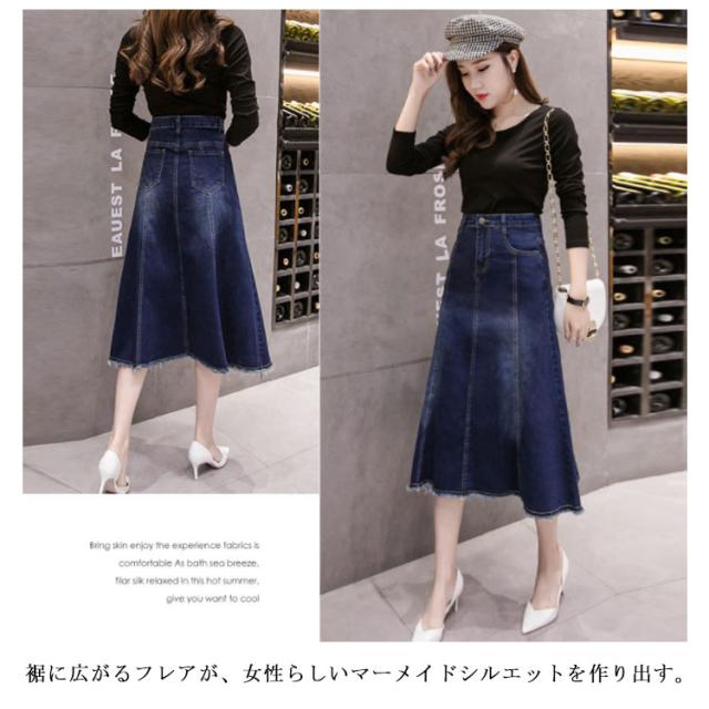 マーメイドシルエット デニムスカート ハイウエストデニムスカート デニム タイトスカート ロングスカート ロングデニムスカート デニムロングスカート aライン ロング丈 スカート 春 夏 秋 冬