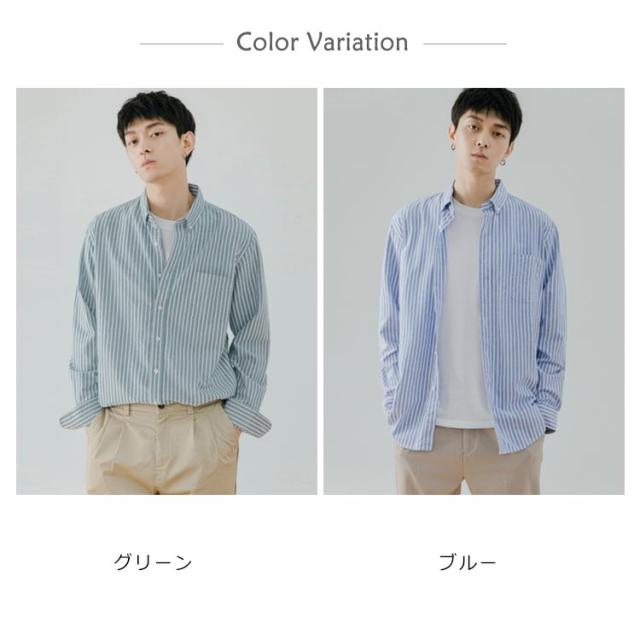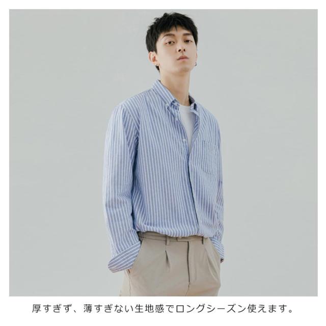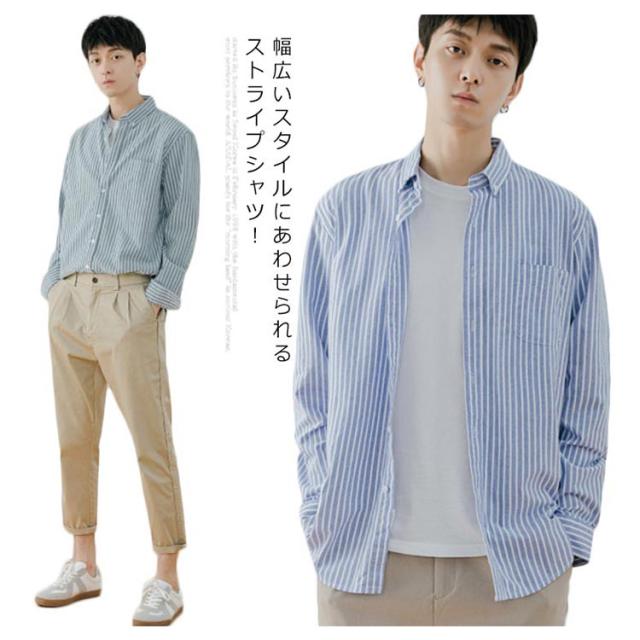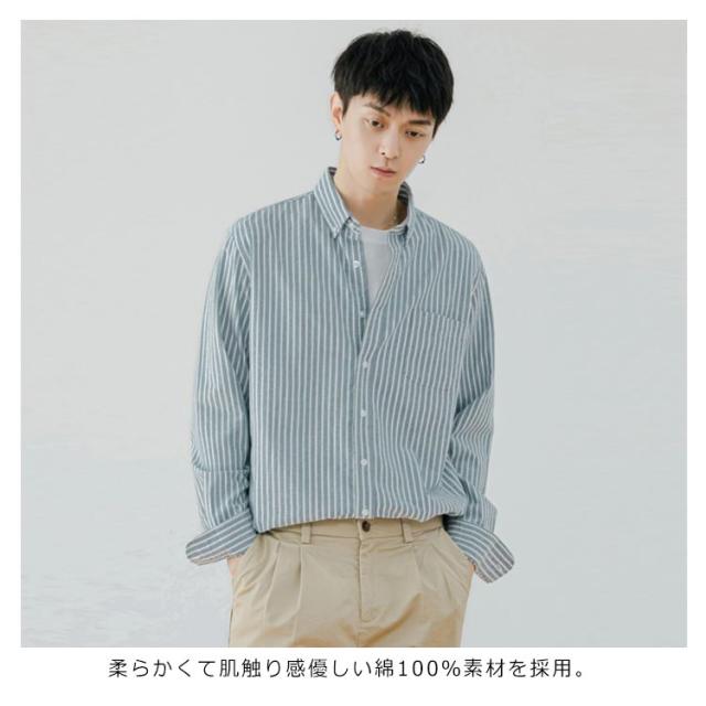 送料無料 ストライプシャツ カジュアルシャツ ボタンダウンシャツ メンズ シャツ ブラウス トップス メンズシャツ 長袖 綿100% 上品 メンズファッション 春夏秋