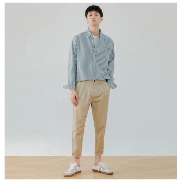 | 幅広いスタイルにあわせられるストライプシャツ! 柔らかくて肌触り感優しい綿100%素材を採用。 適度にゆとりのあるシルエットは定番で、シーンを選ばず落ち着いた着こなしが楽しめます。 厚すぎず、薄すぎない生地感でロングシーズン使えます。 インナーやトップスにこれからの季節に重宝すること間違いなし! | |