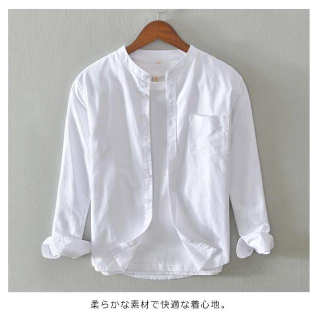 送料無料 選べる2タイプ!カジュアルシャツ メンズ シャツ トップス ブラウス 羽織り 長袖ブラウス カジュアルブラウス 羽織 長袖シャツ 立ち襟 折り襟 無地 コットン 綿 大きいサイズ おしゃれ シンプル 上品 春秋