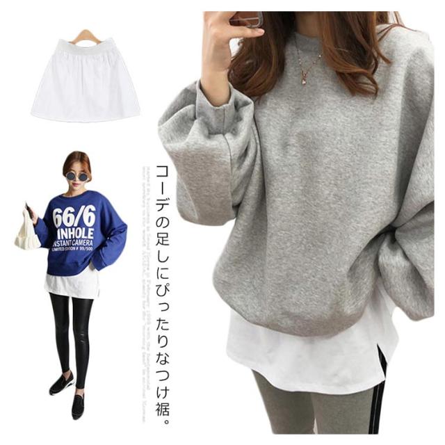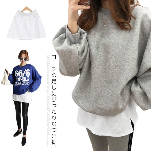 送料無料 パーカーに不可欠な味方!付け裾 つけ裾 重ね着風 レイヤード風 スリット付け裾 カットソー素材 スリット レイヤード カジュアル 体型カバー ホワイト 白 秋 冬 春