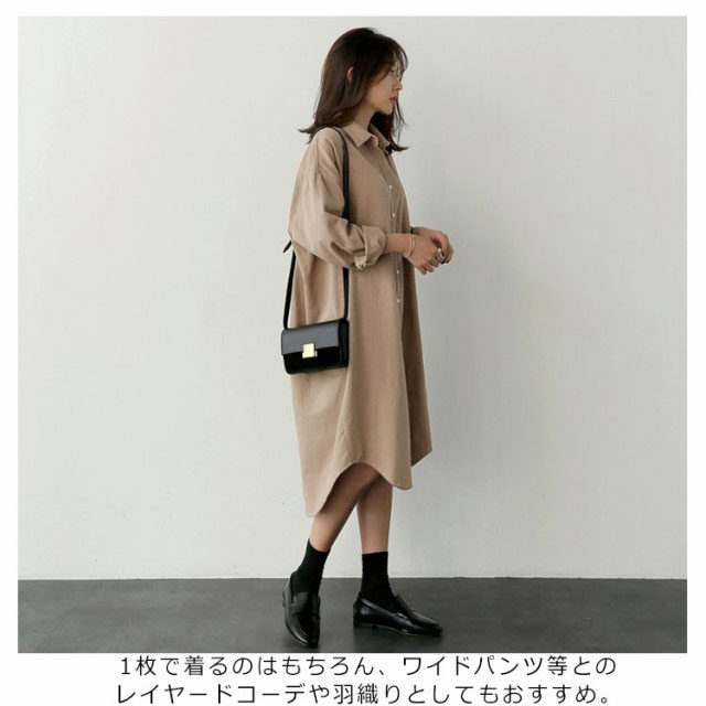 送料無料 シャツワンピ 羽織り ロング丈シャツ シャツワンピース シャツ ワンピ カジュアルワンピース 体型カバー ゆったり マタニティ 無地 ロング 大きサイズ 春 秋