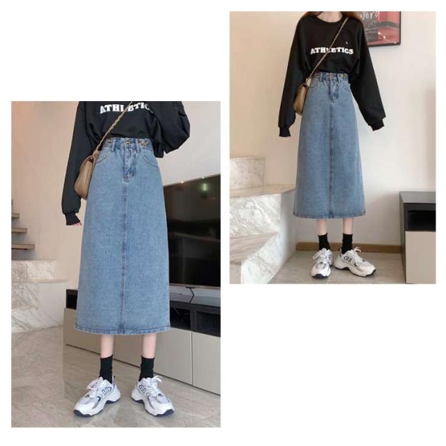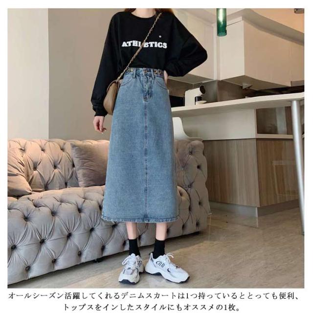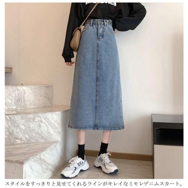 送料無料 ハイウエスト デニム スカート レディース デニムスカート ミモレスカート ロングスカート ストレート ロング丈 ウォッシュ加工 色落ち スリム 着痩せ 美尻 無地 お洒落 シンプル カジュアル ボトムス すっきり 女性 大人