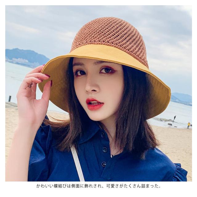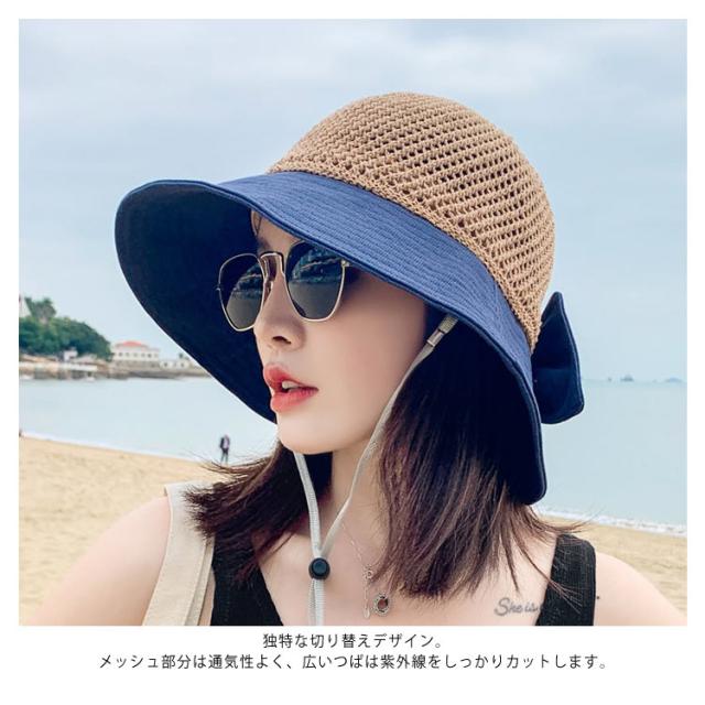 帽子 レディース 大きいサイズ UVカット 送料無料 切り替え メッシュ 蝶結び サイドスリット あご紐付き 小顔効果 紫外線対策 つば広 折り畳み 日よけ 日焼け防止 UV 小顔効果 飛ばない かわいい 自転車 運動会 春夏 母の日