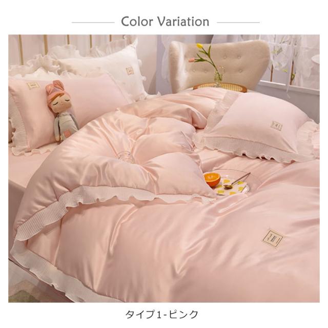 布団カバー ダブル セット ベッドカバー シーツカバー 4点セット 夏 接触冷感 フリル付き 掛け布団カバー 枕カバー フリル付き 丸洗いOK