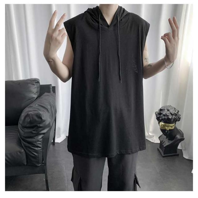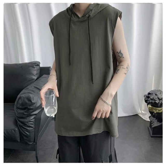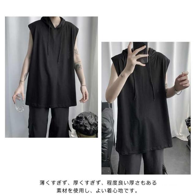 送料無料 全3色×6サイズ!フード付きTシャツ ノースリーブTシャツ メンズ tシャツ タンクトップ ノースリーブ トップス フード付き スポーツウエア 夏服 夏物 大きサイズ シンプル 無地 メンズファッション