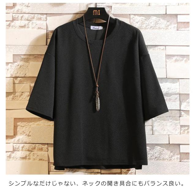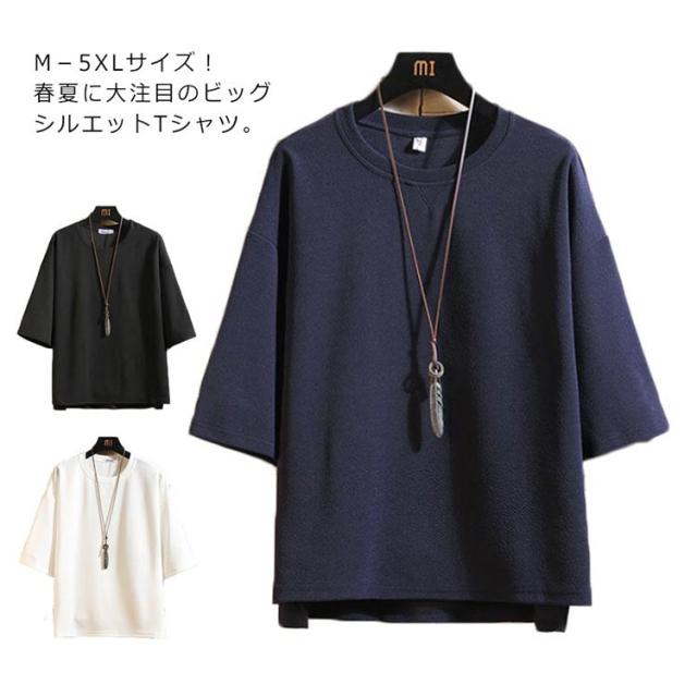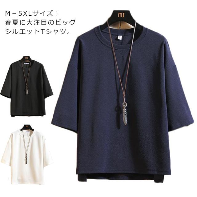 M−5XLサイズ!Tシャツ メンズ 五分袖 ビッグシルエット 五分袖Tシャツ メンズ tシャツ おしゃれ ティーシャツ 5分袖 丸首 無地 ゆったり カジュアル トップス 夏服 大きサイズ 送料無料