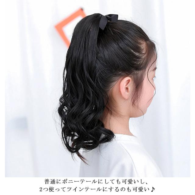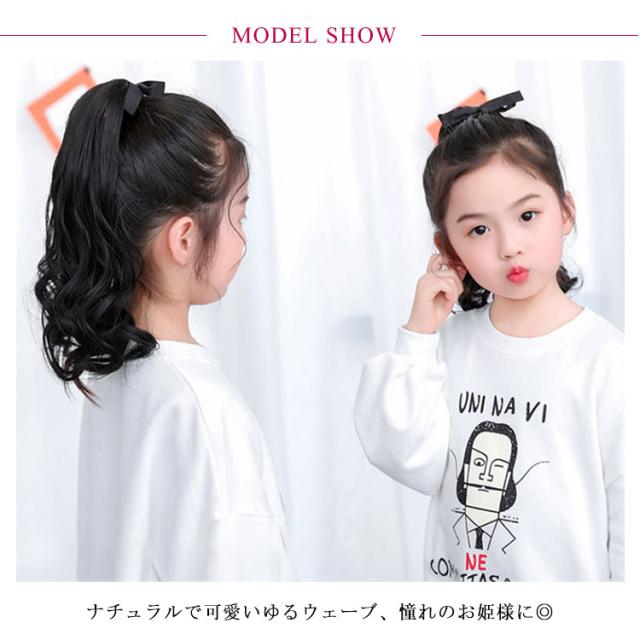 送料無料 ウィッグ キッズ ポニーテール ウェーブ カール ロング ポイントウィッグ 子供 ツインテール 自然 耐熱 つけ毛 かつら ガールズ まとめ髪 エクステ ヘアアレンジ ハロウィン コスプレ