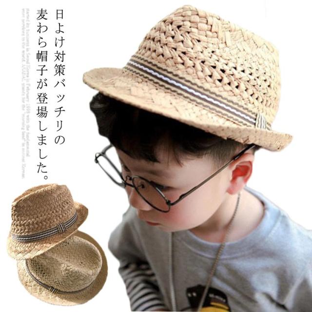 帽子 麦わら帽子 男の子 UVカット紫外線カット子供 キッズ 日よけ帽子 紫外線対策 UV対策 麦わらハット つば広帽子 ベビーハット 男児 子供 麦わら帽子 日除けハット ストライプ 通気性 おしゃれ 通学 通園 幼稚園 保育園 旅行 海 春 春夏 夏