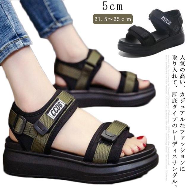 スポーツサンダル 厚底サンダル 厚底スポーツサンダル ヒール高さ5cm 防滑 軽量 カジュアル コンフォートサンダル ストライプサンダル マジックテープ付き 歩きやすい 痛くない