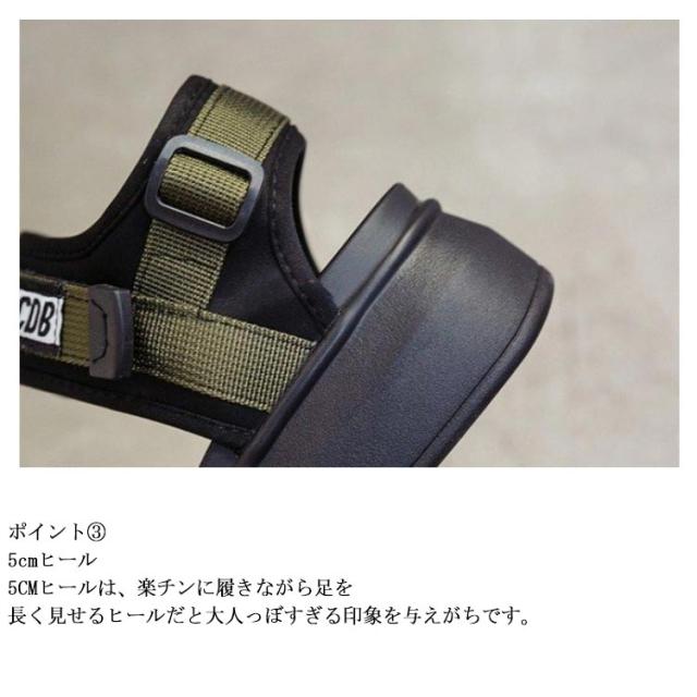 | 人気の高い、カジュアルなファッションに取り入れて、厚底タイプのレーディスサンダル。 ポイント? コンフォートアッパー 肌触りのよい素材を使用して綿密なステッチでしっかり作りになっています。 ポイント? 柔らかいクッション クッション性良いの中敷を使用しているので、普段履きやアウトドアなどいろいろなシーンで活躍している。 ポイント? 5cmヒール 5CMヒールは、楽チンに履きながら足を長く見せるヒールだと大人っぼすぎる印象を与えがちです。 ポイント? 滑り止め機能 底には滑り止め加工がされていてます。 軽量で柔軟性や通気性もよく長疲れにくくて使いやすい。 ポイント? マジックテープ付き マジックテープ付きの仕様で、脱ぎ履きが易なる。 | |