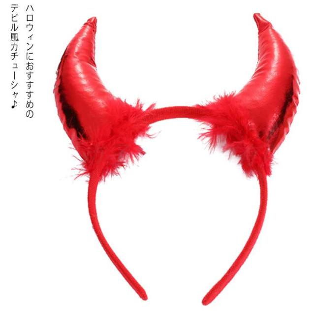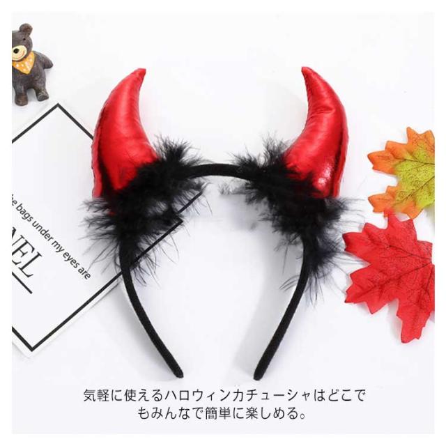 送料無料 ハロウィーン カチューシャ 悪魔の角 魔族 コスプレ ツノ コスチューム用小物 コスチューム 変装 衣装 アクセサリー 髪飾り 耳 ファー 光沢 コスプレグッズ 仮装 パーティー 部活 学園祭