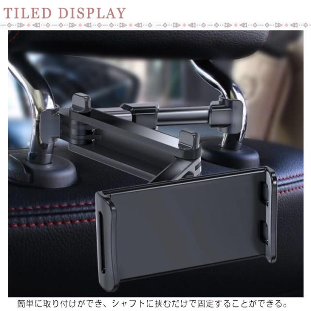 タブレットホルダー phone 後部座席用 スタンド iPad 車載 スマホホルダー Android ヘッドレスト 伸縮アームスタンド 多機種対応 360度回転 カー用品 ドライブ 車用品 携帯 スマートフォン