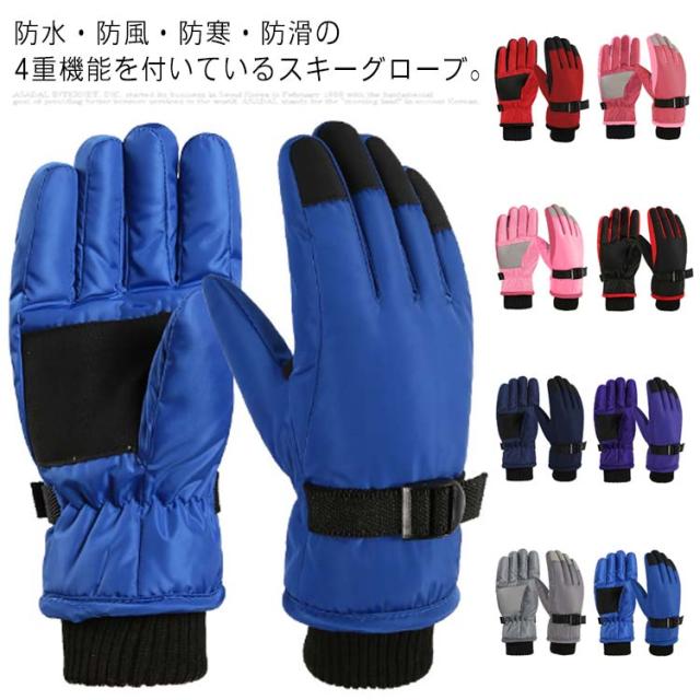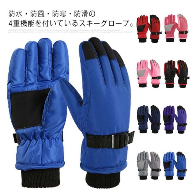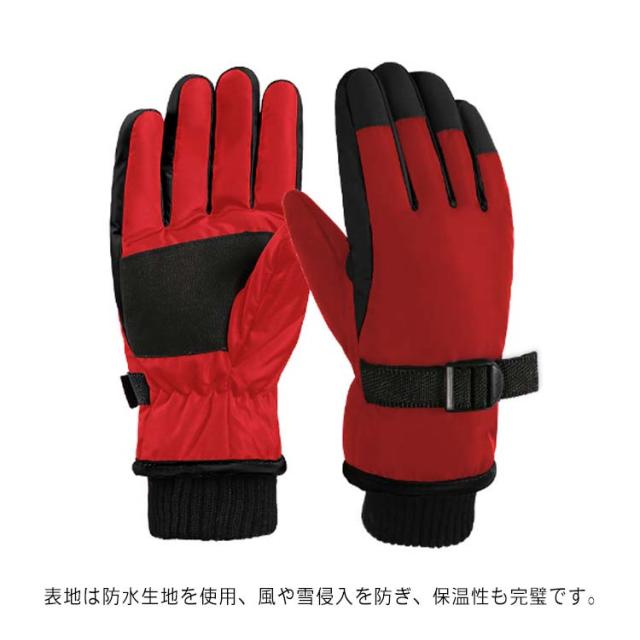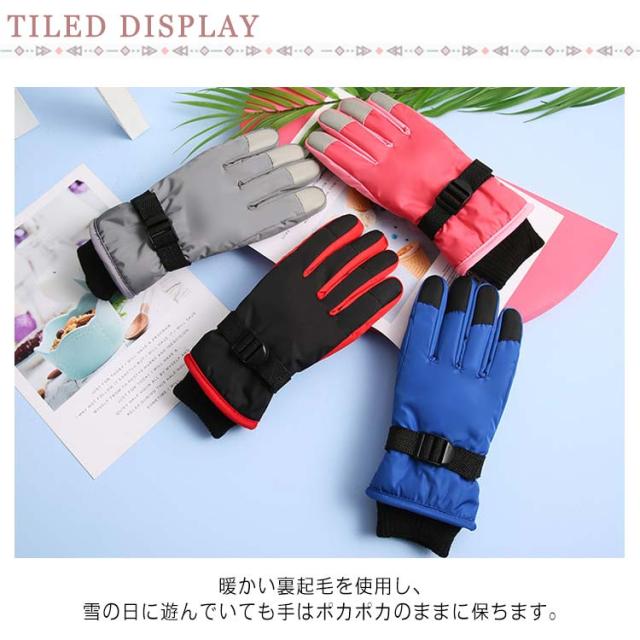 キッズ 手袋 男の子 女の子 子供 裏起毛 冬用 スキー グローブ 防寒 撥水 防風 8-16歳 五本指 暖かい ウインターグローブ 厚手 通園通学 スノー手袋 あったか 雪遊び 手ぶくろ