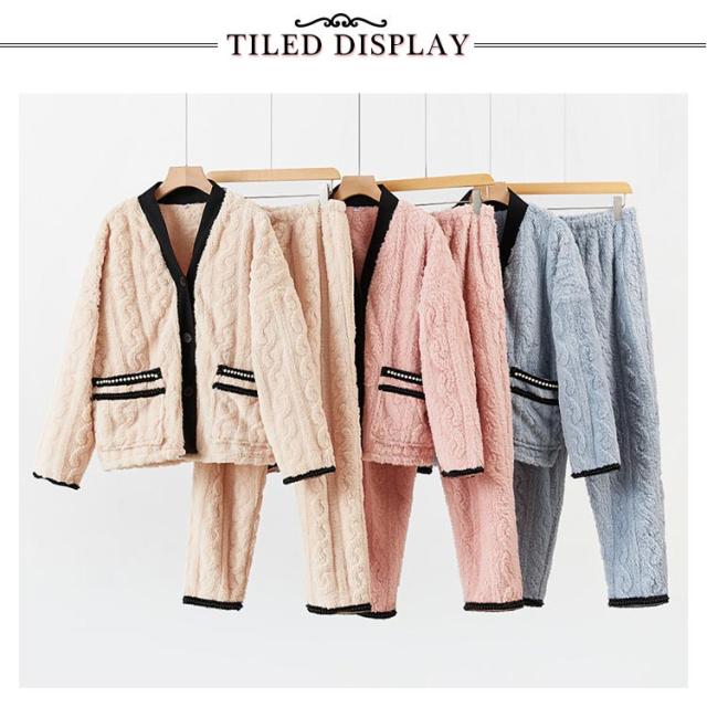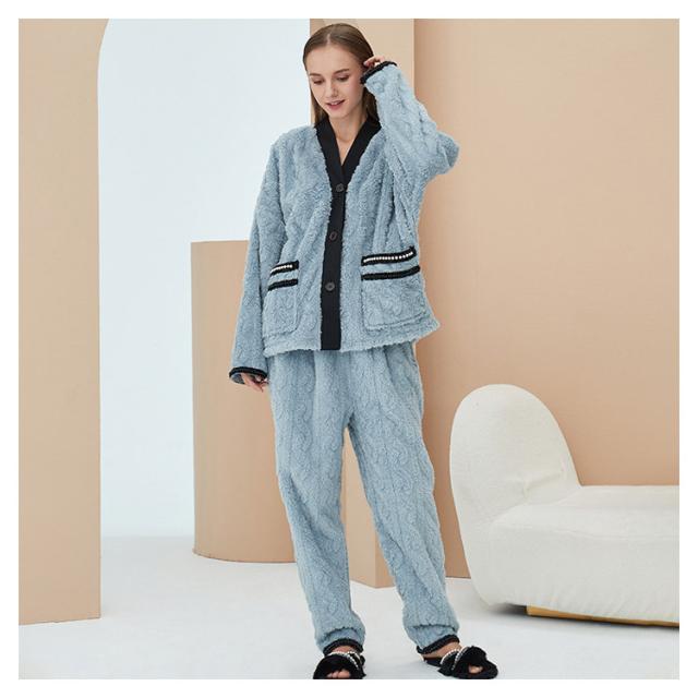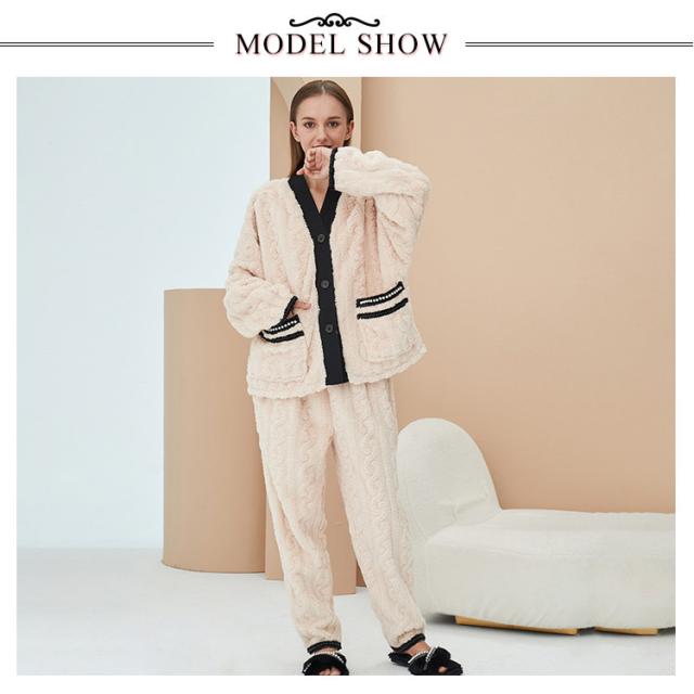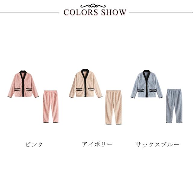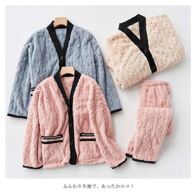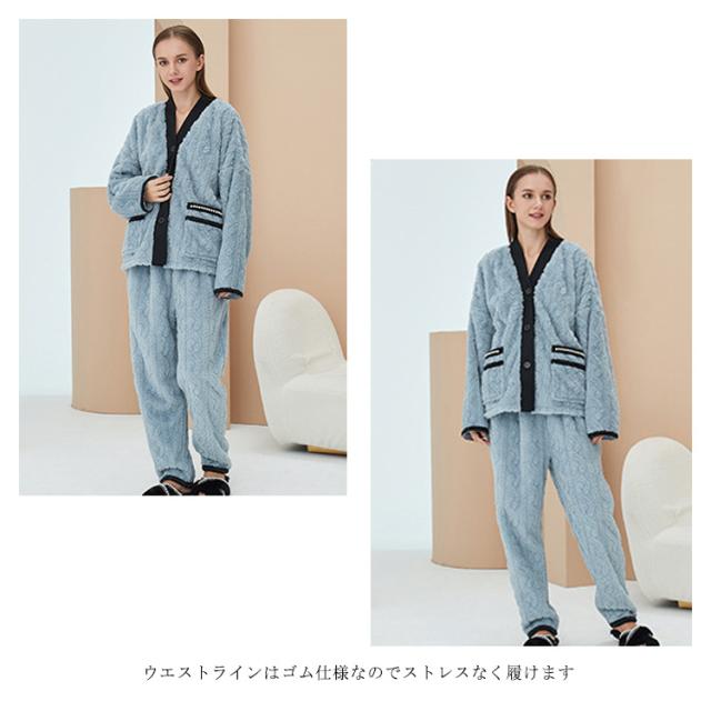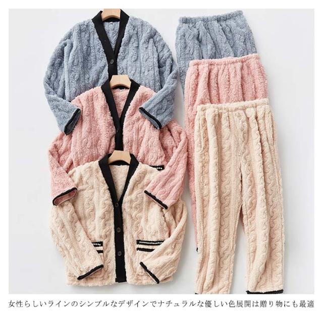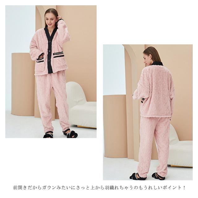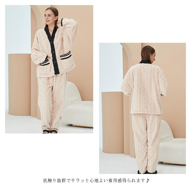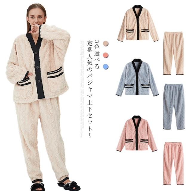 レディース パジャマ ルームウェア 長袖 もこもこ あったか フランネル 上下セット 可愛い 前開き 部屋着 秋冬