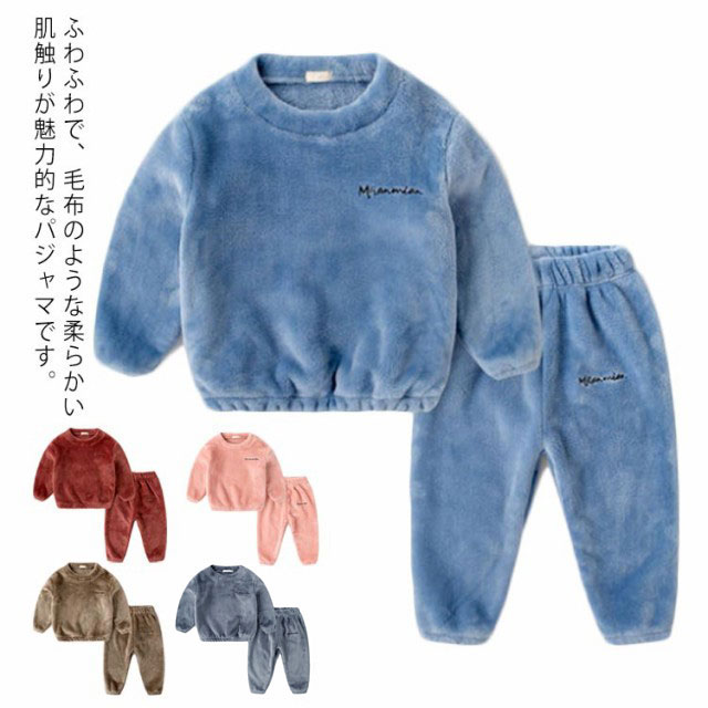 ルームウエア セットアップ 上下セット キッズ フリース 裏起毛 部屋着 秋 秋冬 冬 パジャマ ナイトウェア 可愛い 女の子 男の子 ユニセックス 子ども 子供 ルームウエア もこもこ シャギーボア マイクロファイバー リラックス