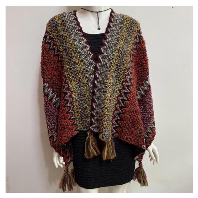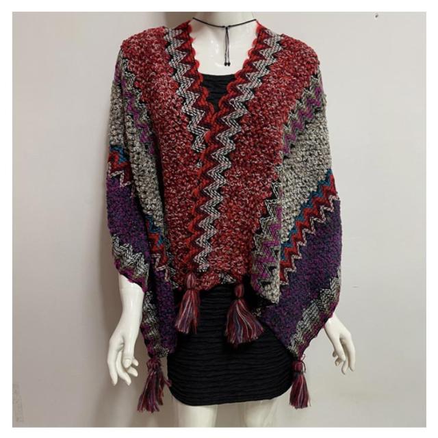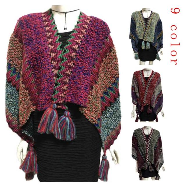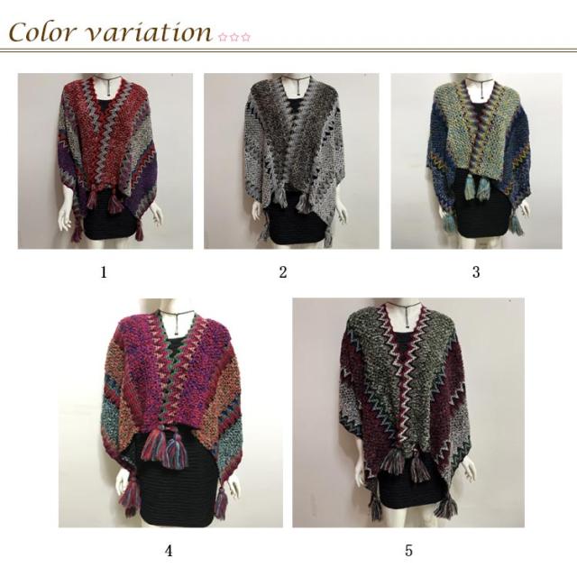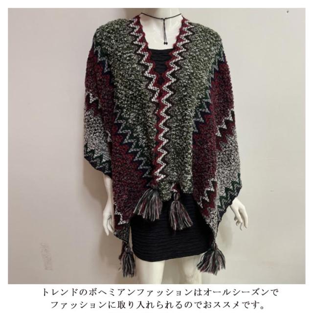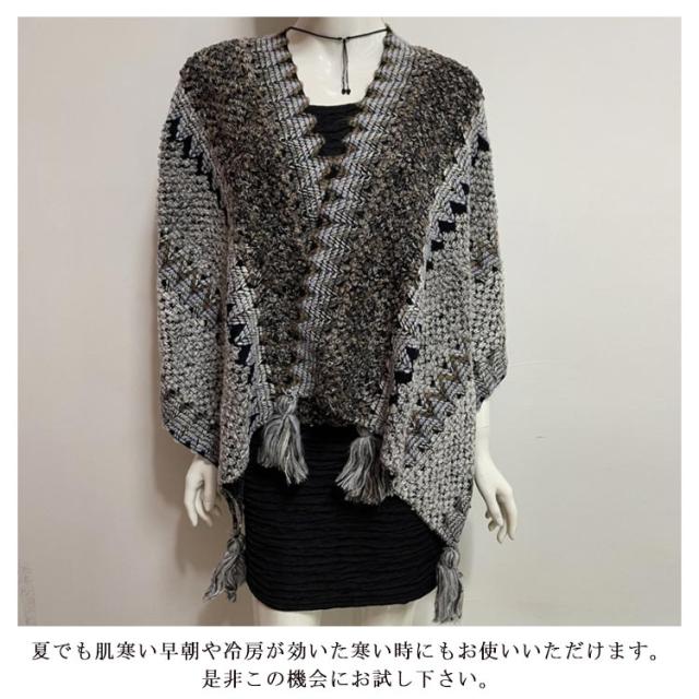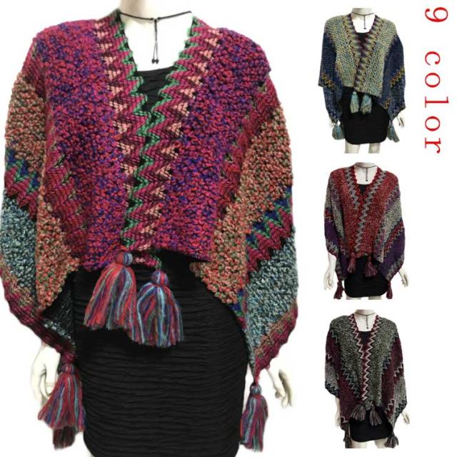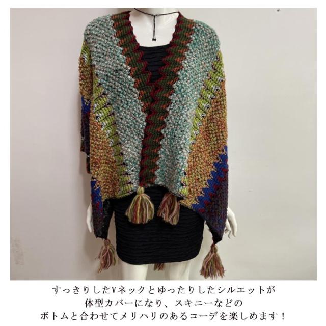 マントコート レディース ショールコート ポンチョコート ポンチョ レディース マフラー Vネック セーター ニットポンチョ フリンジポンチョ エスニック柄 オルテガ柄