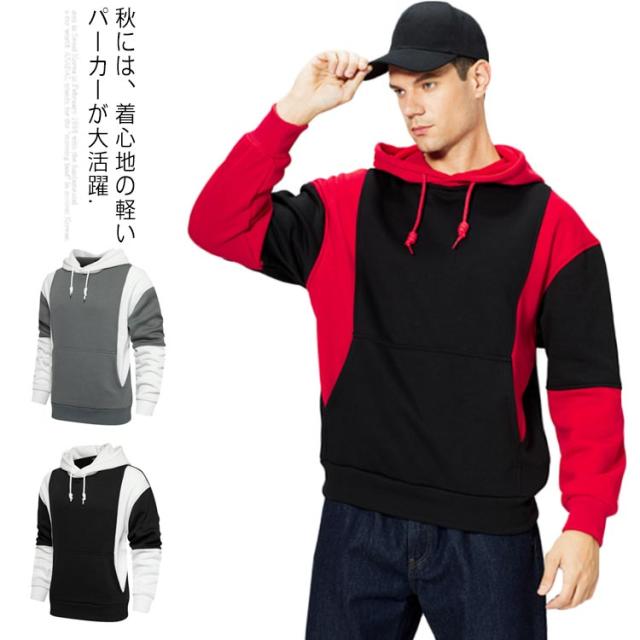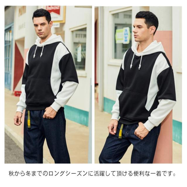 パーカー スウェットパーカー メンズ 長袖 秋冬 プルオーバー 大きめサイズ トレーナー スポーツ ゆったり 配色 切り替え フード付き おしゃれ