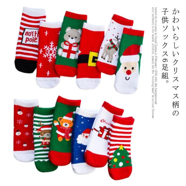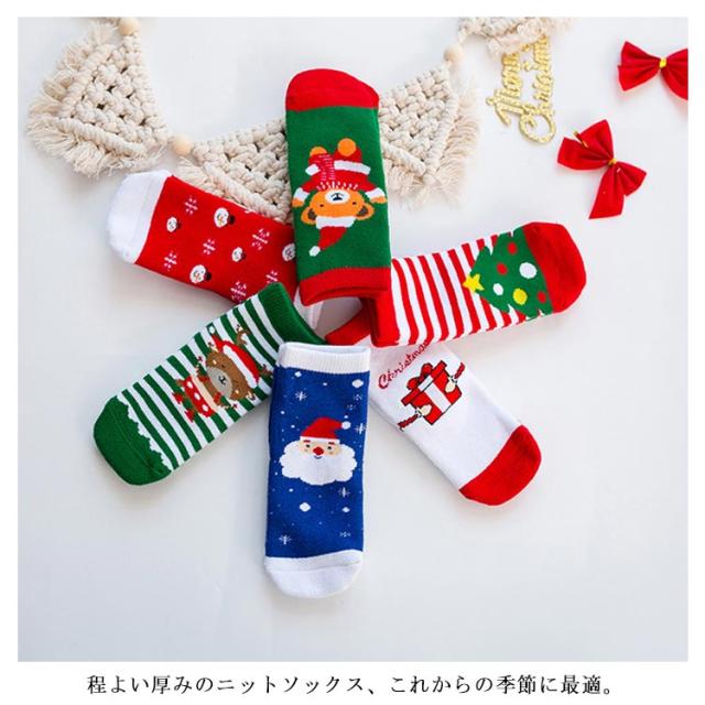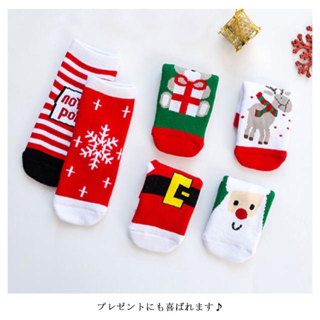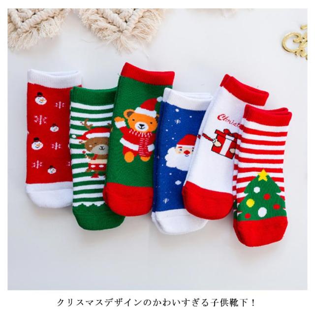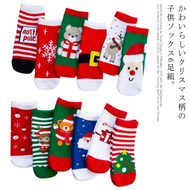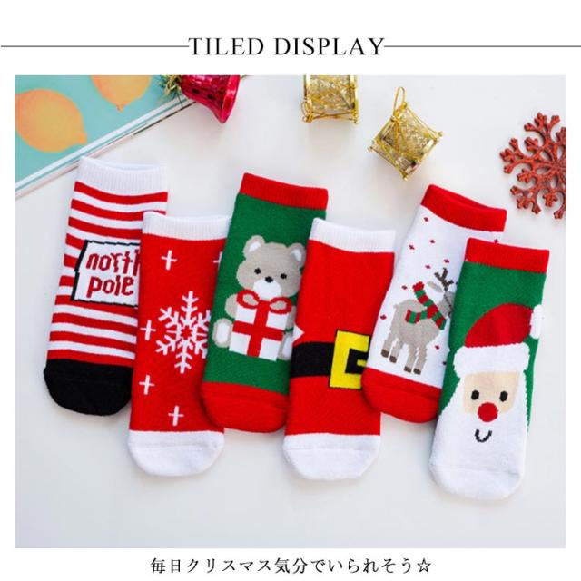 送料無料 靴下 ソックス 子供 キッズ クリスマス ソックス 綿 ショートソックス 6足組 暖かい 子供ソックス ベビー ジュニア 女の子 男の子 ギフト プレゼント 動きやすい 冬 可愛い おしゃれ 赤ちゃん 6-19cm