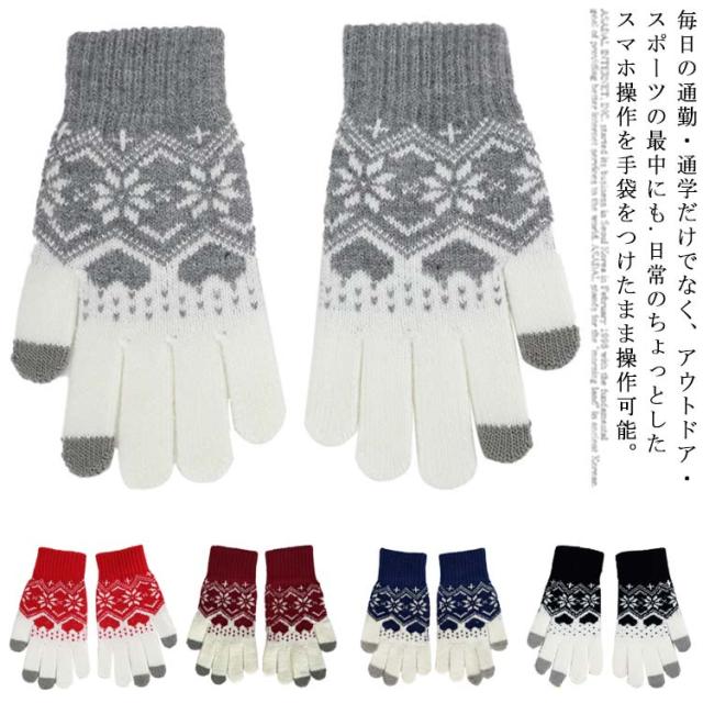 手袋 レディース ニット手袋 ぶくろ 秋冬 防寒 自転車 スマホ手袋 タッチスクリーン対応 レディース 防寒手袋 秋冬 厚手 保温 防寒 暖かい 大人 女性用 ニットてぶくろ クリスマス おしゃれ グローブ プレゼント 冬物 雪花柄 可愛い