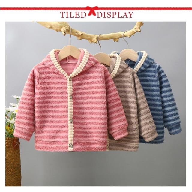 モコモコアウター キッズ モコモココート フード付き 男の子 女の子 ボアジャケット ボアコート ボアパーカー キッズ 子供服 起毛 ボア 上着 アウター ユニセックス 防寒 軽量 暖かい ストライプ