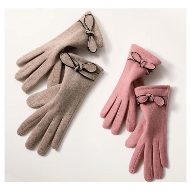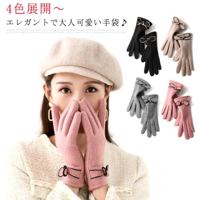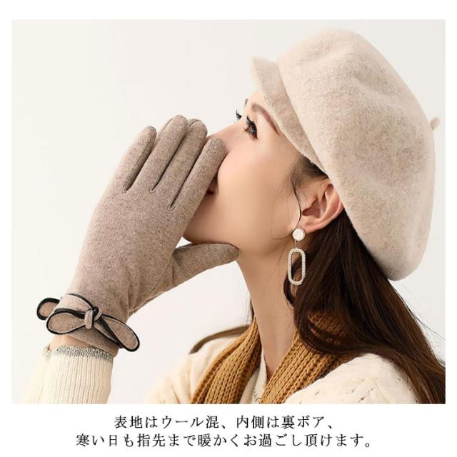 手袋 ウール混 裏ボア リボン付き レディース 防寒 裏起毛 冬 保温 自転車 バイク アウトドア 通勤 通学 かわいい ファッション おしゃれ