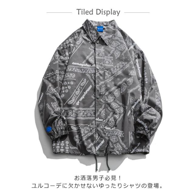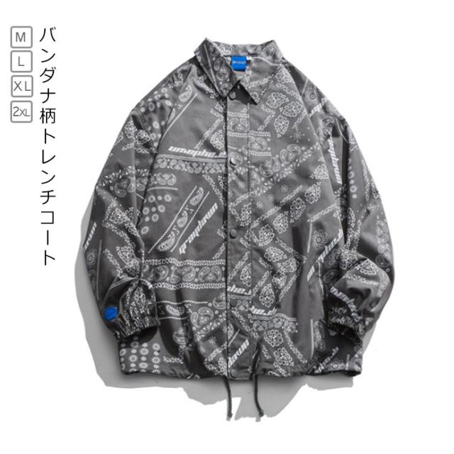 トレンチコート 総柄 シャツ 柄シャツ メンズ 長袖 バンダナ柄 ペイズリー柄 シャツ ゆったり 韓国 ファッション ペイズリー ビッグシルエット B系 ストリート系 スト系 ストリート男子 バンダナ ペーズリー ペイズリー