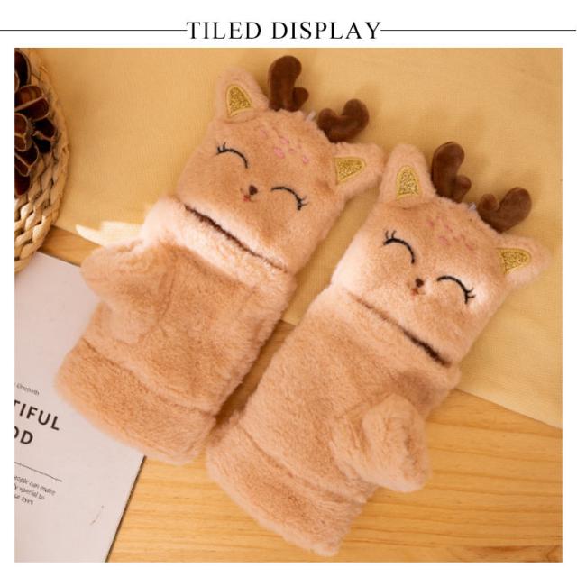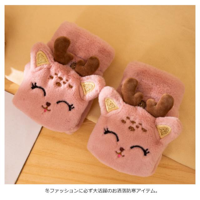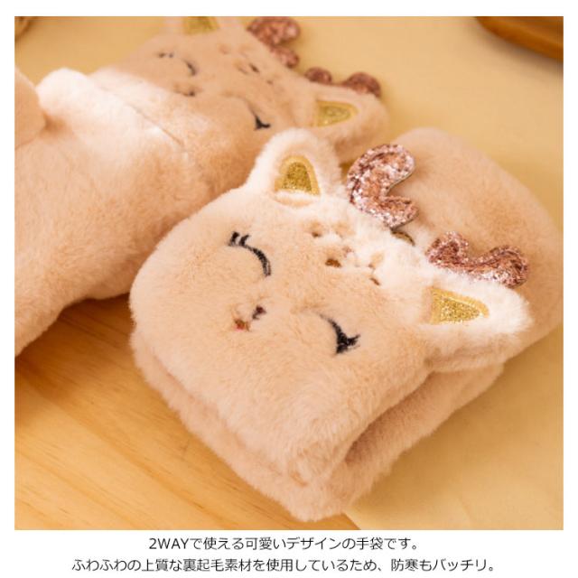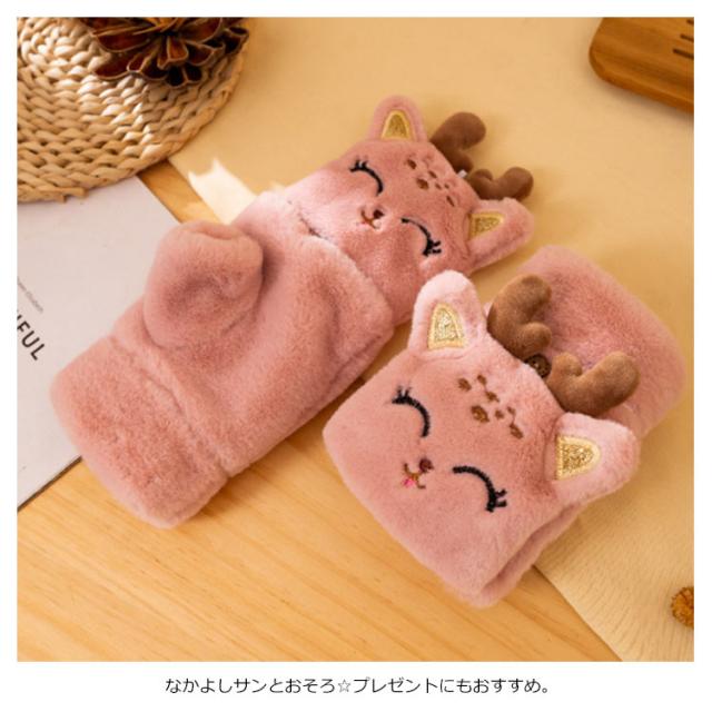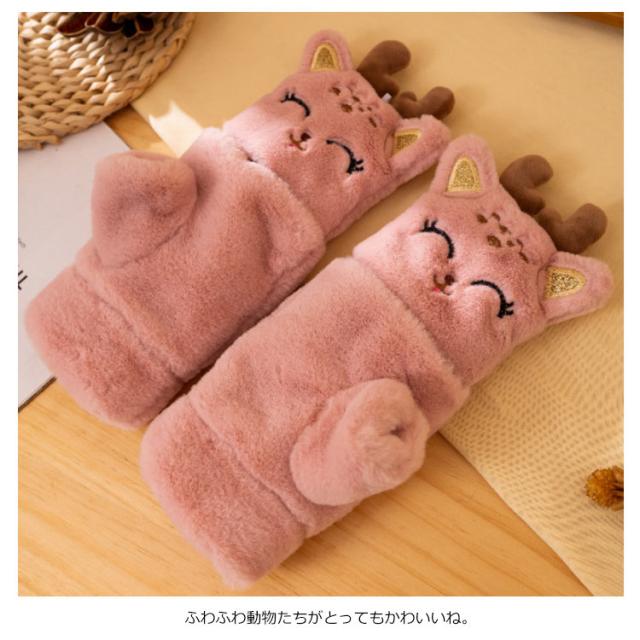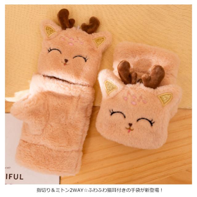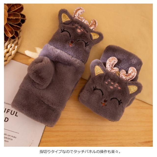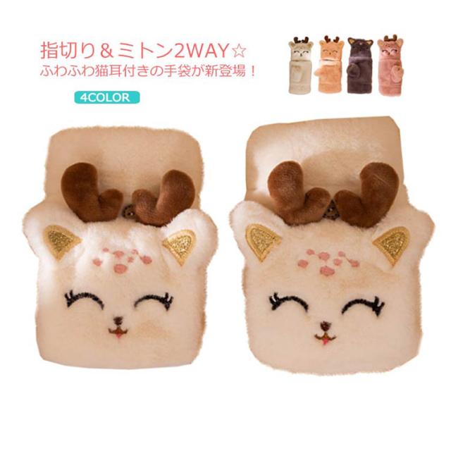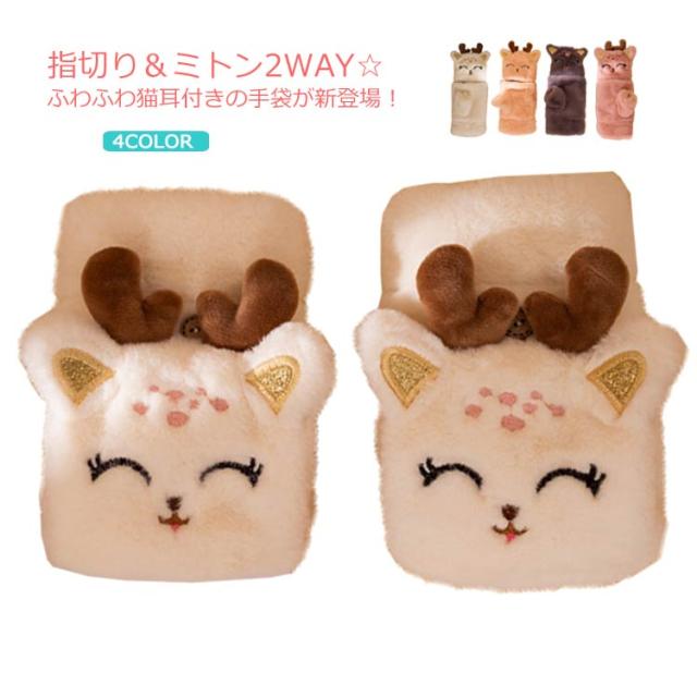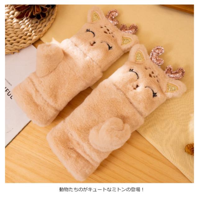 手袋 ミトンカバー付き 指なし レディース 女性 ガールズ 冬物 裏ボア グローブ フィンガーレス 指切り アニマル 猫耳 ファー 指なし かわいい ボア ふわふわ もこもこ オープンフィンガー