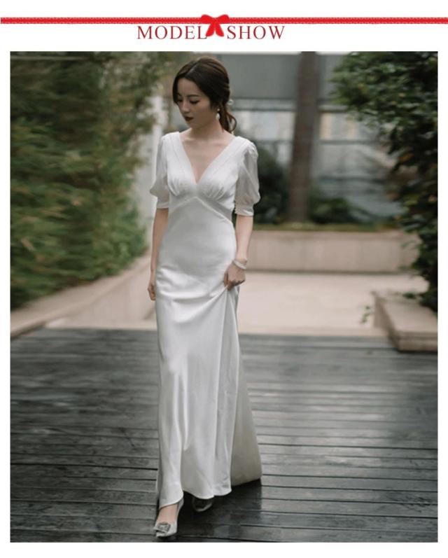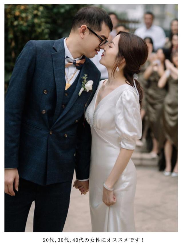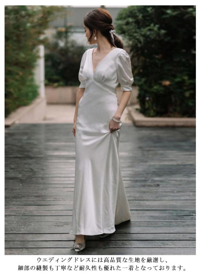 ウエディングドレス 二次会 プリーツ Vネック パフスリーブ 半袖 袖あり 披露宴 二次会 挙式 撮影 2次会 結婚式 花嫁 ドレス 前撮り 披露宴 フォトウエディング ハネムーンフォト レース フォーマル おしゃれ