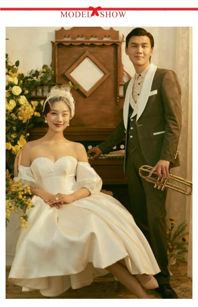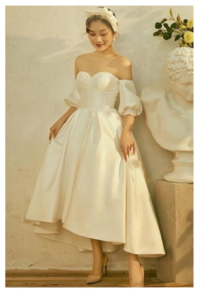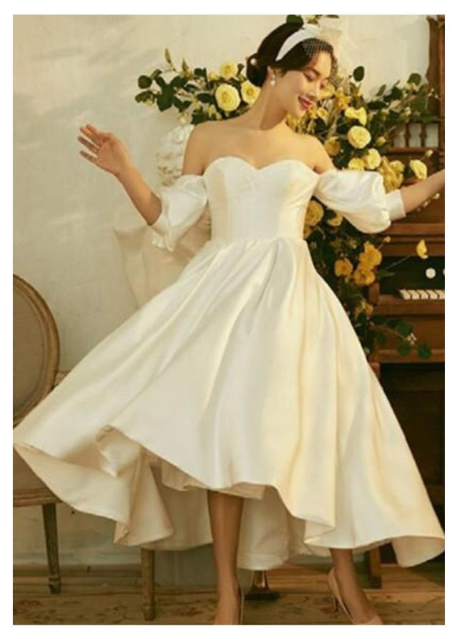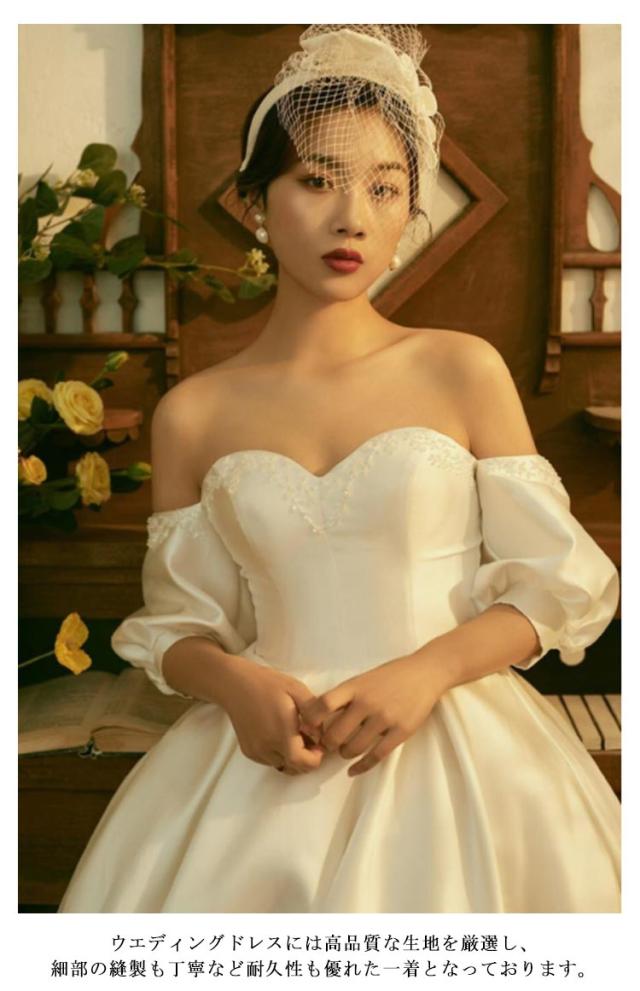 ウエディングドレス ウェディングドレス 袖あり 五分袖 パフスリーブ エンパイアライン ドレス チューブトップ ドレス 花嫁ドレス 白 ホワイト ブライダル 撮影 海外挙式