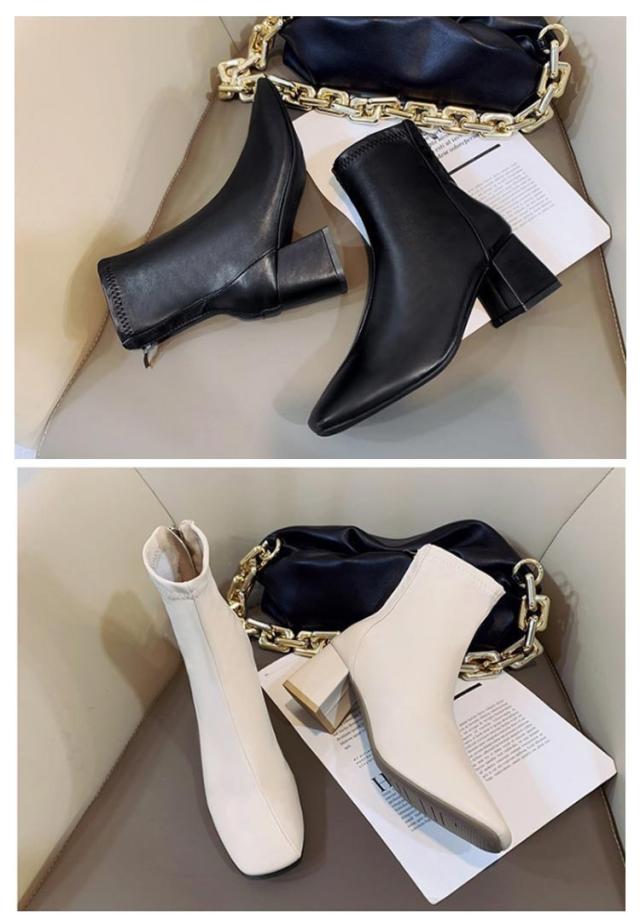 レディース ブーツ ショート ショートブーツ フェイクレザー 靴 韓国ファッション シューズ 靴 くつ ブーツ ショートブーツ ソックスブーツ アンクルブーツ スクエアトゥ ミドルヒール レザー カジュアル 秋 冬